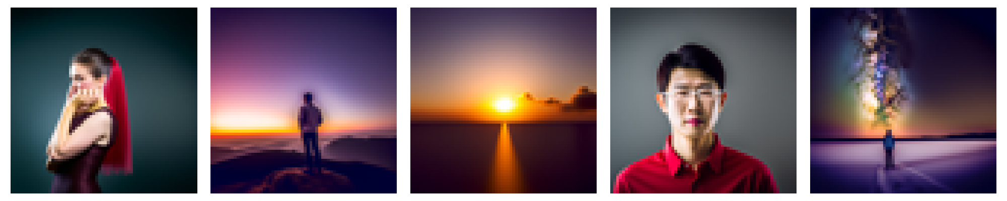 Here are five sampled images from the diffusion model with the prompt "a high quality photo."